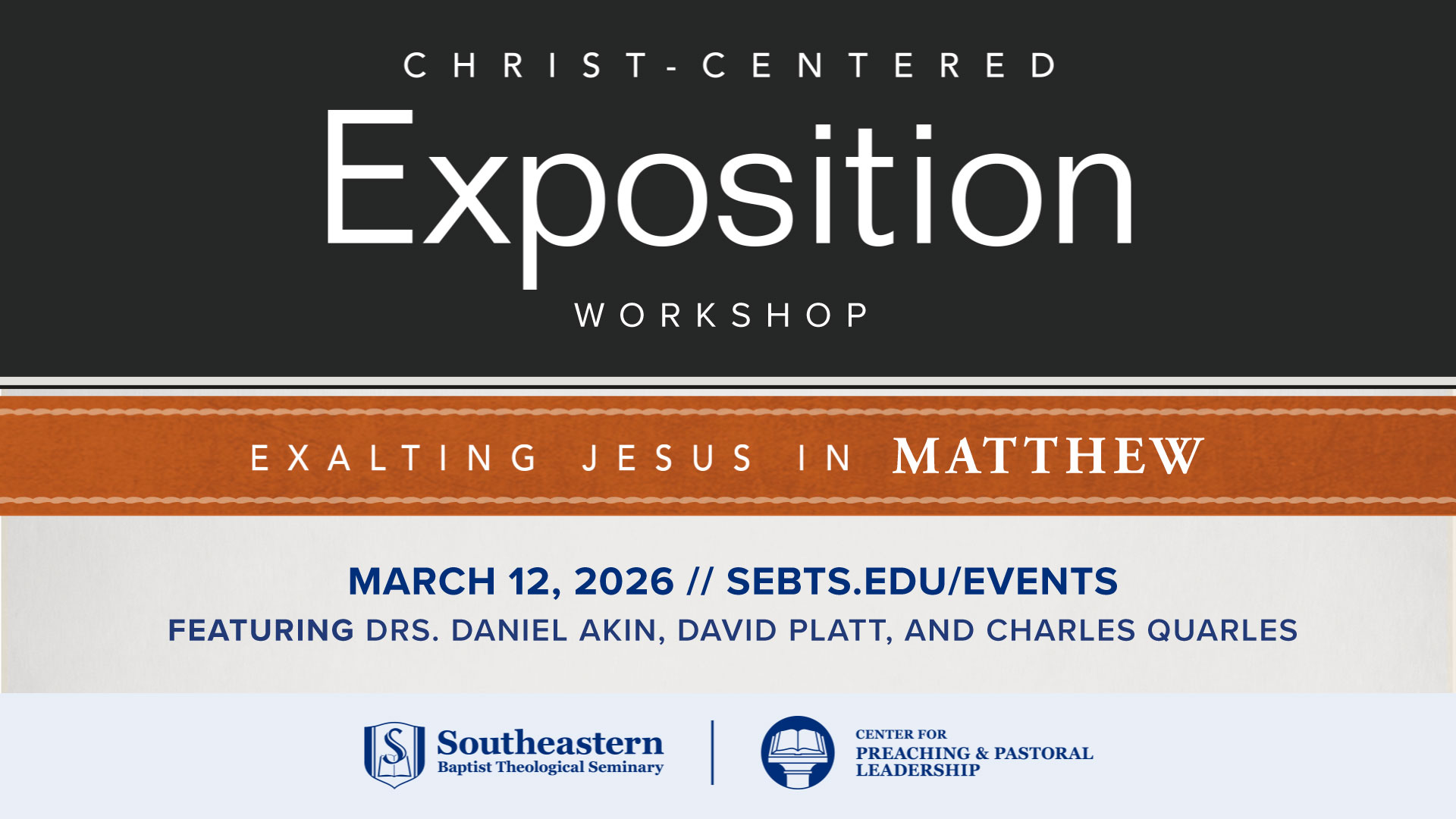 This workshop will equip you to become a more effective communicator and expositor of God’s word. Danny Akin, Charles Quarles, and David Platt will cover issues of interpretation in Matthew and key themes of the book, and they will share valuable insights to help you enhance your preaching. This event also provides a great opportunity for fellowship, as you will attend a Southeastern chapel service and gather over lunch with other guests.