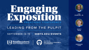 Engaging Exposition is Southeastern Seminary’s annual preaching conference designed to equip local church pastors to preach and lead biblically. This two-day event delivers compelling preaching, practical breakout sessions, free resources, encouragement, and opportunities to network with like-minded pastors. The theme for 2026 is “Leading from the Pulpit.”