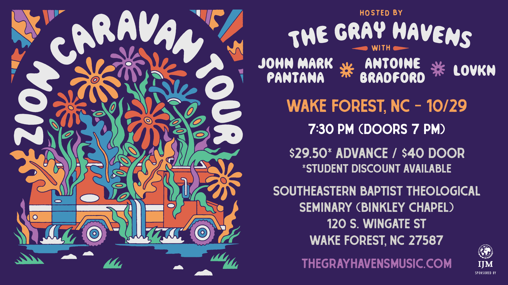 The Gray Havens present the Zion Caravan Tour, featuring The Gray Havens, LOVKN, John Mark Pantana, and Antoine Bradford.