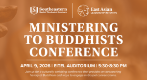 Join us Thursday evening, April 9, in the Eitel Auditorium for a culturally enriching conference that provides an overarching history of Buddhism and ways to engage Buddhists in gospel conversations. Whether you’re preparing for the international mission field or desiring to better reach your Buddhist neighbors with the good new of Jesus, this conference is for you!